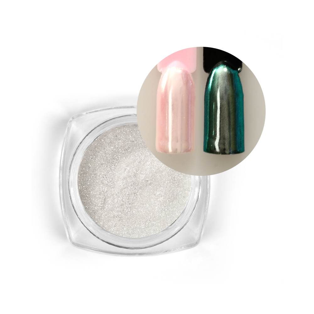 Moonlight greenish chrome effect. Apply by rubbing in tacky layer of gel or no tacky top coat. 1 gr