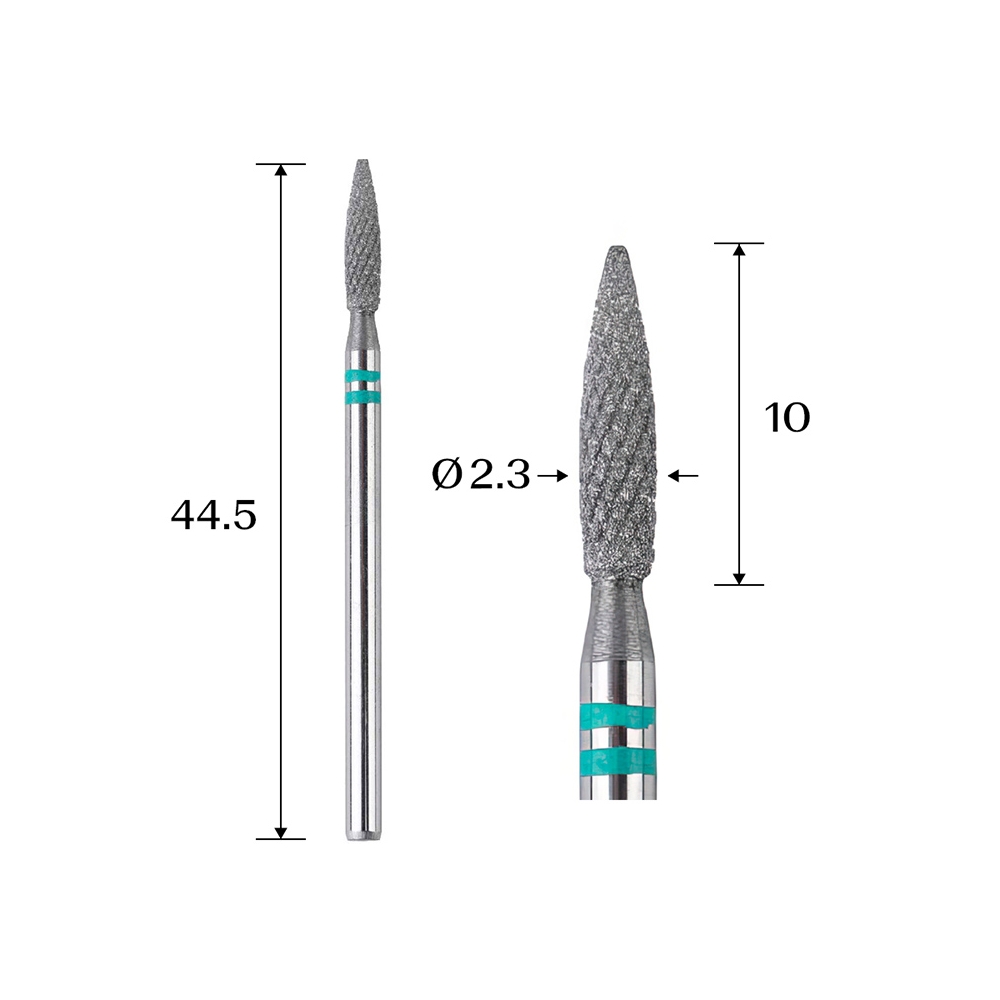 Профессиональная фреза Flame для точной обработки кутикулы и боковых валиков. В отличие от обычных алмазных фрез со стальной основой, эта модель имеет основу из карбида вольфрама с алмазным покрытием. Это делает фрезу более жёсткой и значительно повышает её износостойкость.